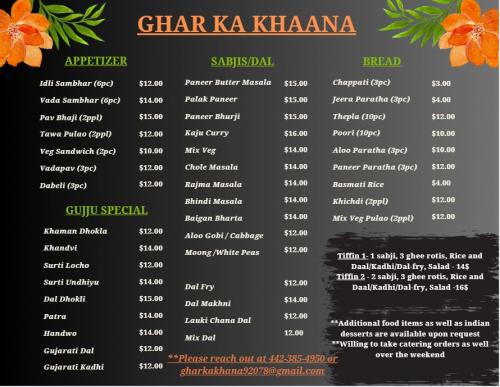 Please check out our Ghar ka Khaana Menu and let me serve you your favourite delicacies.